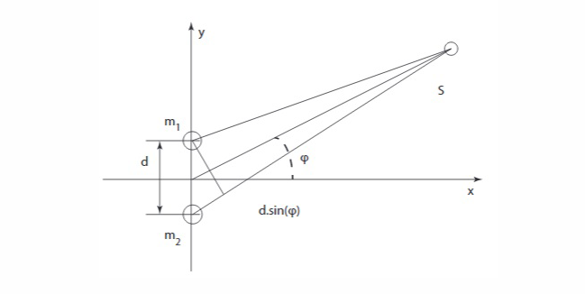 式中,d代表传声器之间的距离,c为声音传播的速度, φ为声源传播的角度。