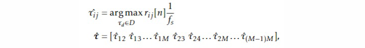 以单个立体小型传声器阵列为例,假设M个传声器,则通过上面的公式进行估计TDOAτij。通过传声器